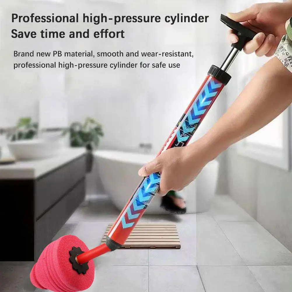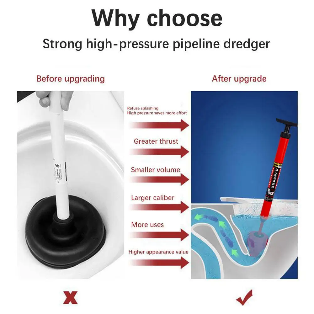 The heavy duty toilet plunger has a maximum pressure of 120psi, which helps to blow the blockage open in seconds. Lighter and more effective than toilet screws. (Make sure the blowing action is quick and continuous)