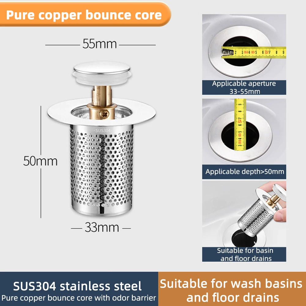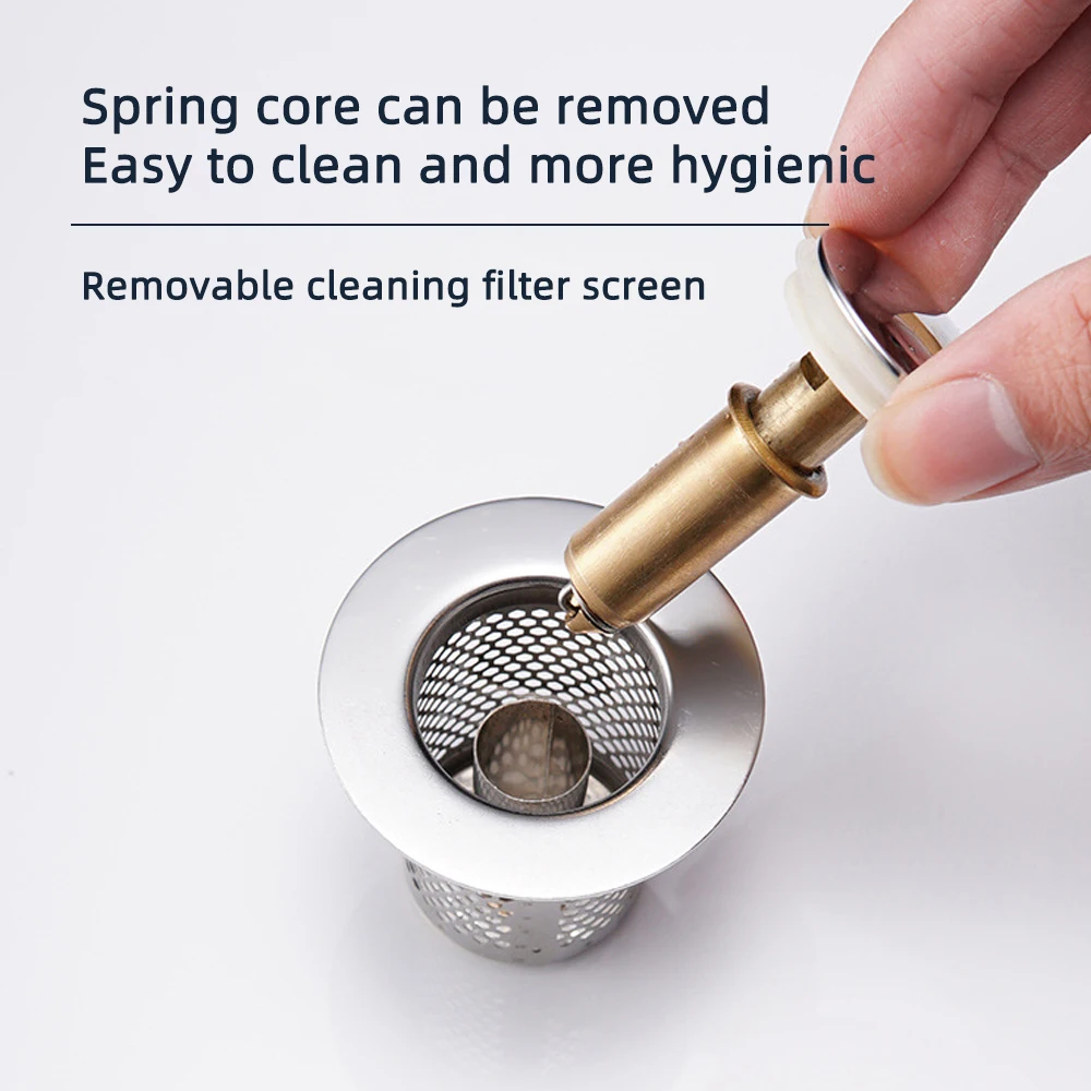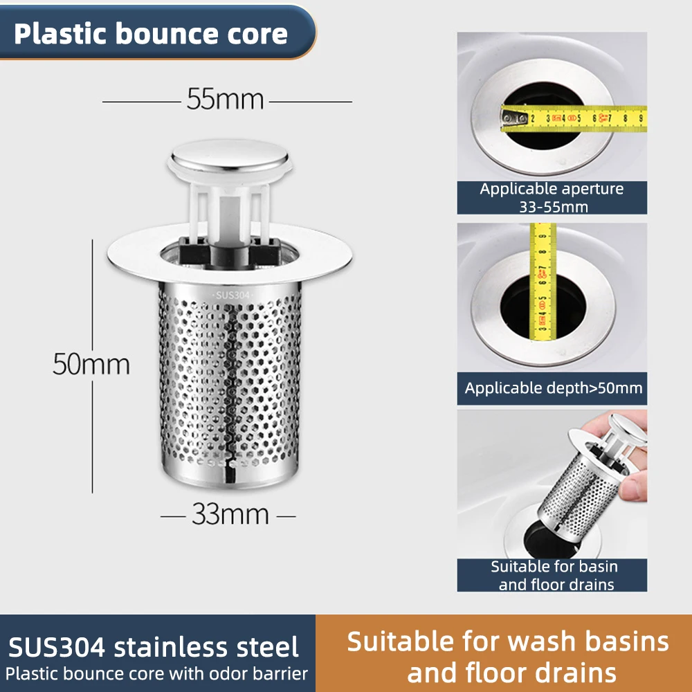 ♥【Easy to Install】Anyone can install the pop-up drain fliter, because it has a simple structure and doesn't need any tools. Just take out the old sink drain stopper and insert the bouncing core.