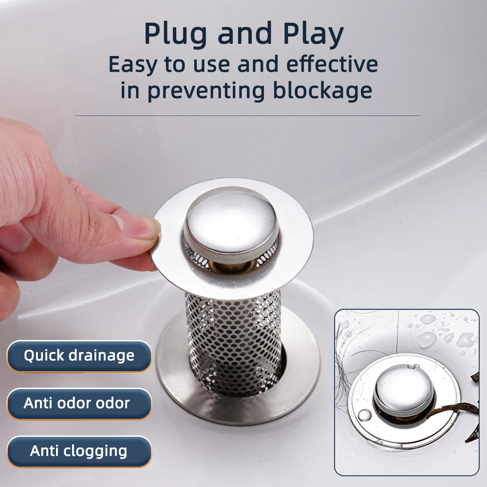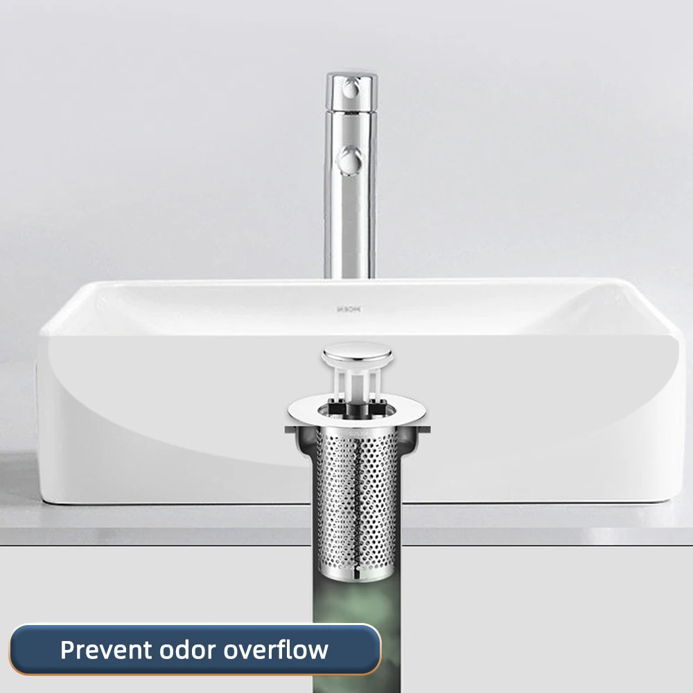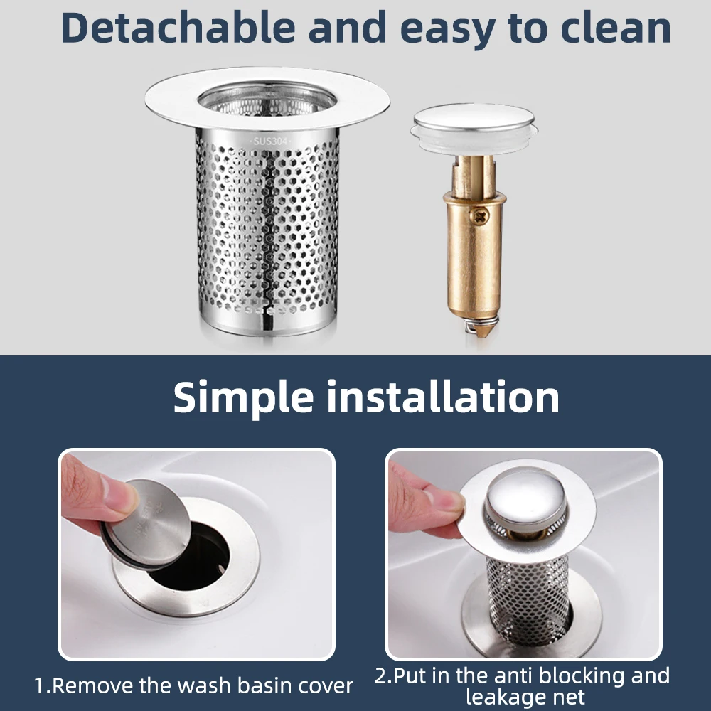 ♥【Upgrade Sink Drain Filter】Pop-up drain filter design.You can switch between the two modes, plug (water storage) and filter (water drainage), just by lightly pressing the top cover.