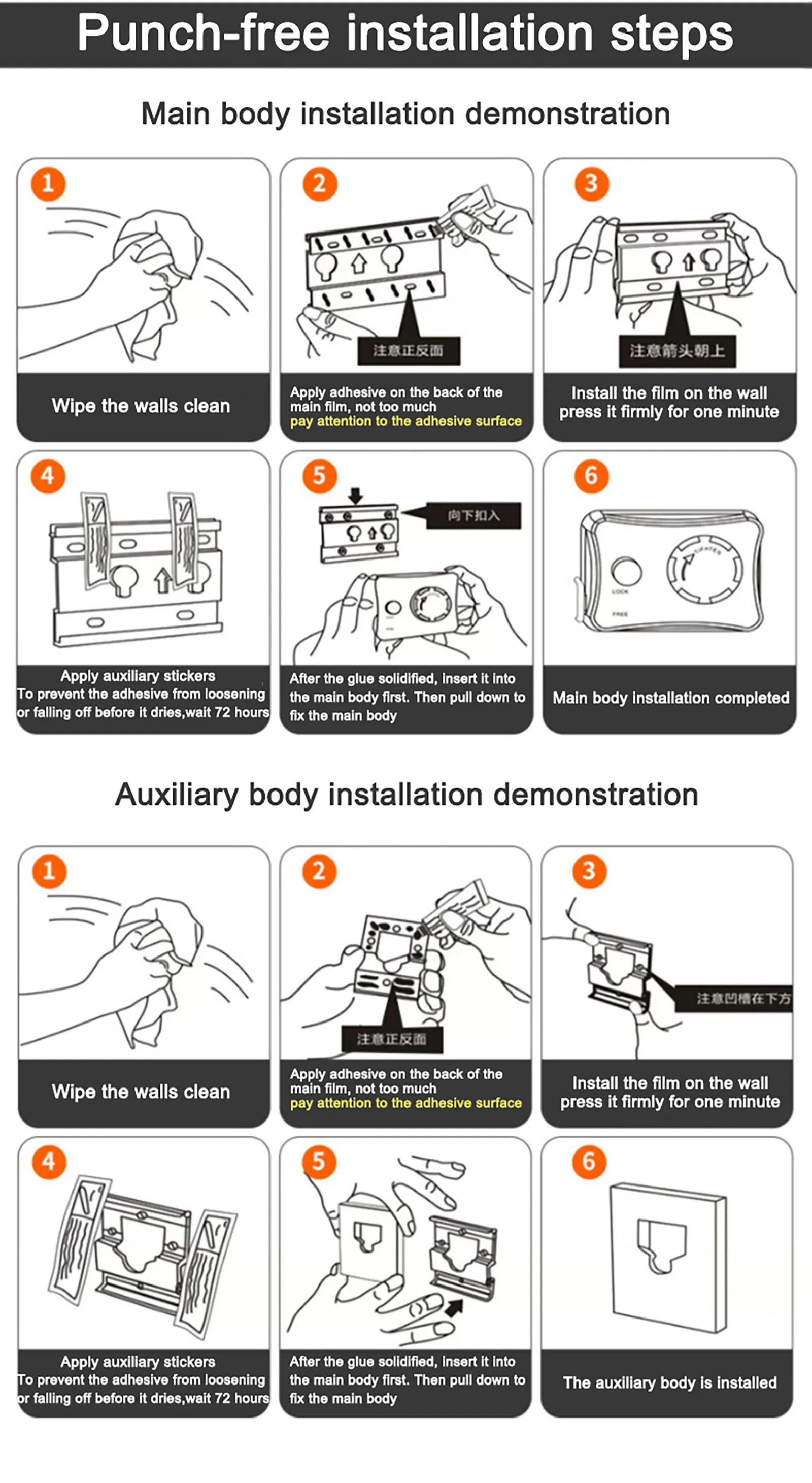 Please follow the installation steps. After applying the hole-free glue, please let it stand for 72 hours before using it.