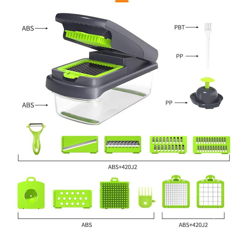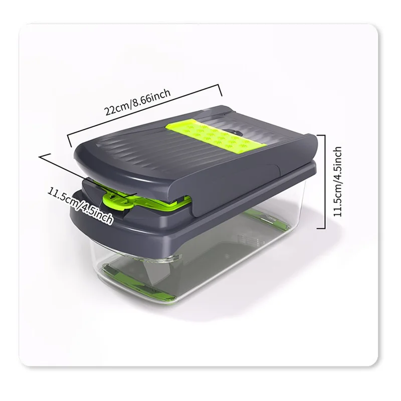 EXCELLENT QUALITY: The multifunctional vegetable cutter is made of durable ABS and stainless steel to ensure long-term use without rusting. Consisting of 7 sharp, interchangeable hardened stainless steel blades, it cuts food precisely and quickly. Whether you are a novice chef or a gourmet cook, this multifunctional vegetable cutter is a must-have kitchen gadget.